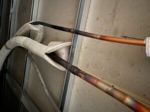 通常ルームエアコンなら冷媒管の太さは9ミリ程と太い物で12ミリですが、業務用となると15ミリや19ミリの物もあれば22、25ミリとただの太い鉄パイプみたいな物もありますw