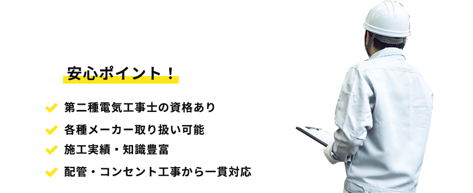 電気を使用する工事のため、安全第一で作業することも重要です。まだまだ新しい会社ではありますが、施工を担当する職人の施工実績は豊富なため、技術・対応力には自信があります。